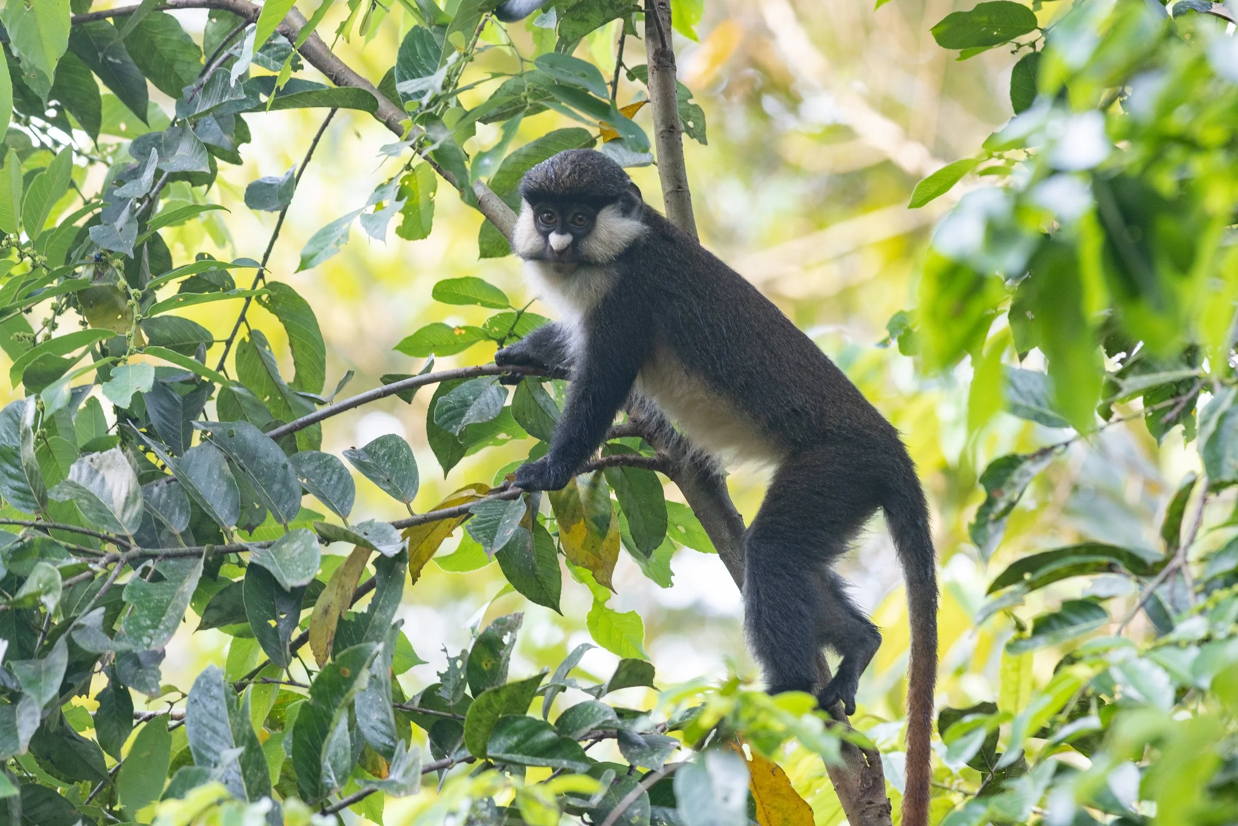 After an early breakfast we drive five hours to the to the little known Bugoma Forest and our beautiful eco-lodge. Bugoma forest offers one of the most interesting conservation stories in Uganda. Little visited by tourists, the forest is under enormous pressure from large agricultural businesses and illegal charcoal burning and is quickly becoming fragmented which is leaving the chimp groups here fragmented and in danger from human-wildlife conflict. There’s only one lodge in the vicinity of the forest and the management here have set up an association – Friends of Bugoma Forest – who are fighting to save the forest and its chimps. It’s a hard battle they have taken on and, in their own words, “tourism might be the only thing that can save this forest and the chimpanzees”. On arrival we will have a late lunch before setting out on an afternoon tracking a habituated group of beautiful – and very playful – mangabey monkeys. This is the only place in Uganda offering this experience.
