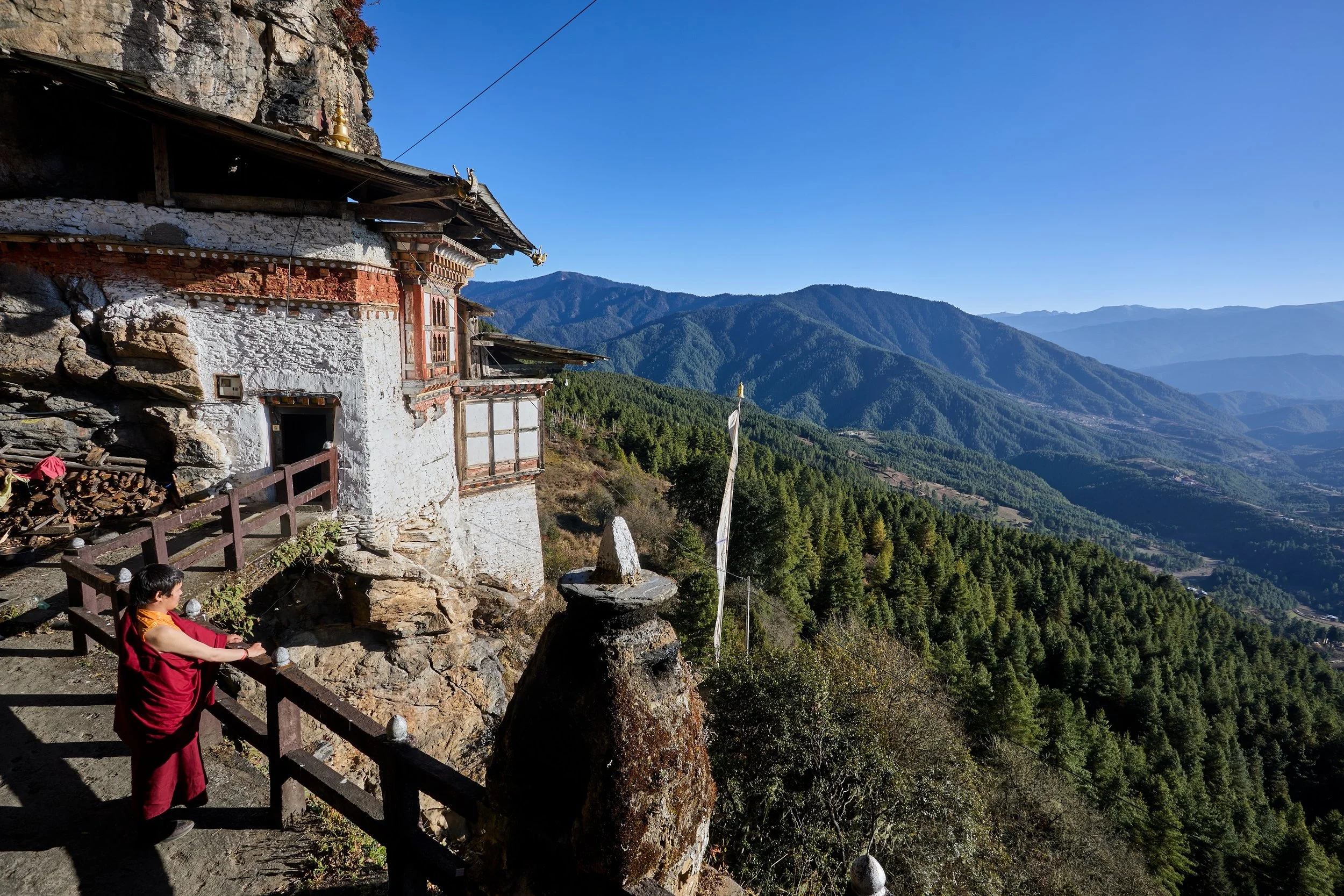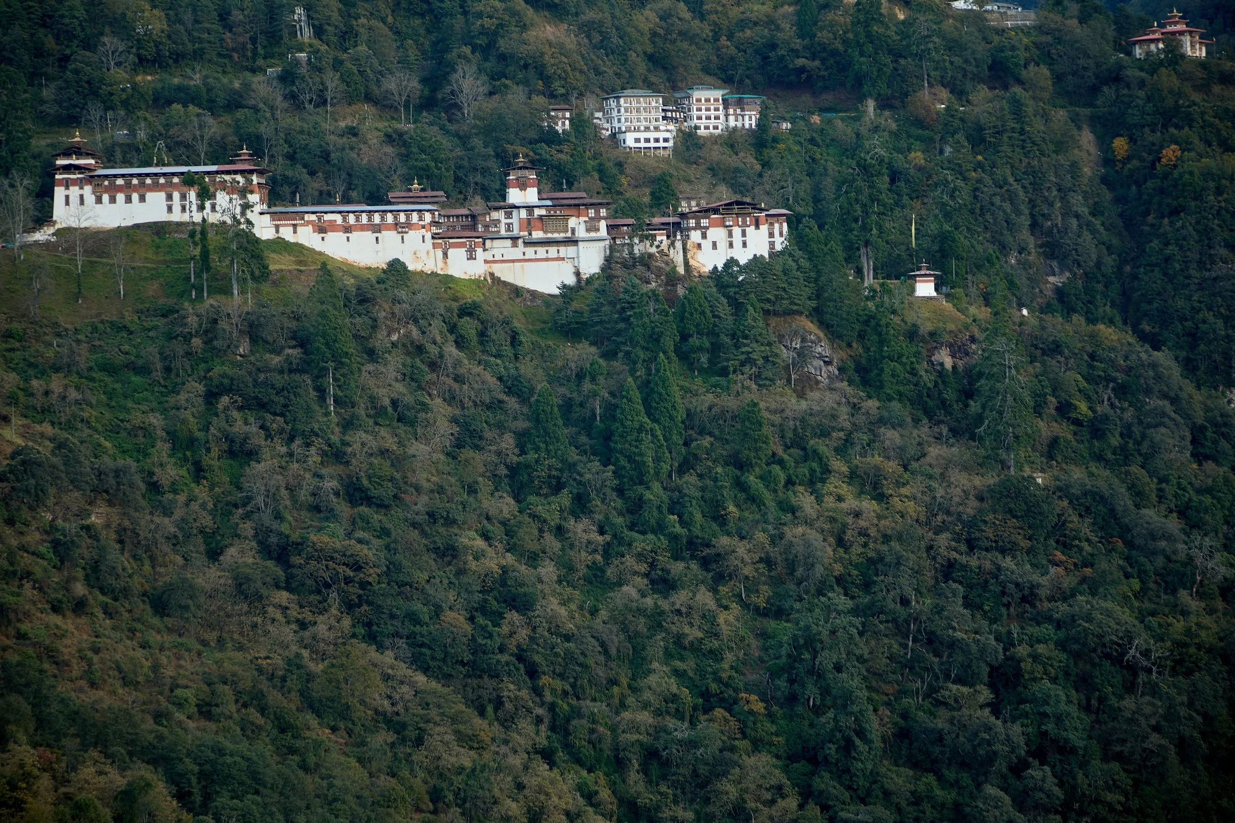 Dropping back down to Paro we will stop at another cliff side chapel complex, Dzongdrakha Goemba. Although this complex is close to Paro and sometimes described as a mini–Tigers Nest, it receives very few foreign visitors - all the better for us. Ninth century Tantric Buddhist master, Guru Rinpoche is said to have battled demons here during his many visits to Bhutan. During our last research visit much of the complex was undergoing renovations but it’s still worth a visit just for the views down towards Paro.